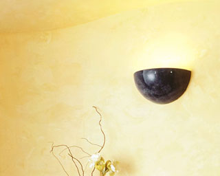 Wände oberhalb des Fliesenspiegels in Spachteltechnik Farbig sind die gespachtelten Flächen am Cotto-Ton der Fliesen orientiert, jedoch heller und leichter.