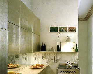 Schränke versilbert und patiniert Arbeitsplatte Ahorn - lasierend geölt |