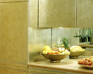 Die relativ starke Patina und strenge Gliederung verleihen den versilberten Schränken Understatement.