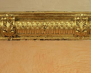 Fehlstellen durch Altanstriche im Stuck sind bewusst beibehalten und ergeben so eine natürliche Patina.