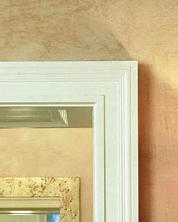 Kommode und Spiegelrahmen versilbert und lasiert.