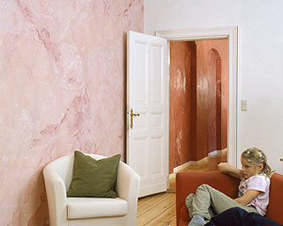 Die Wand links im Raum interpretiert eine Marmorstruktur